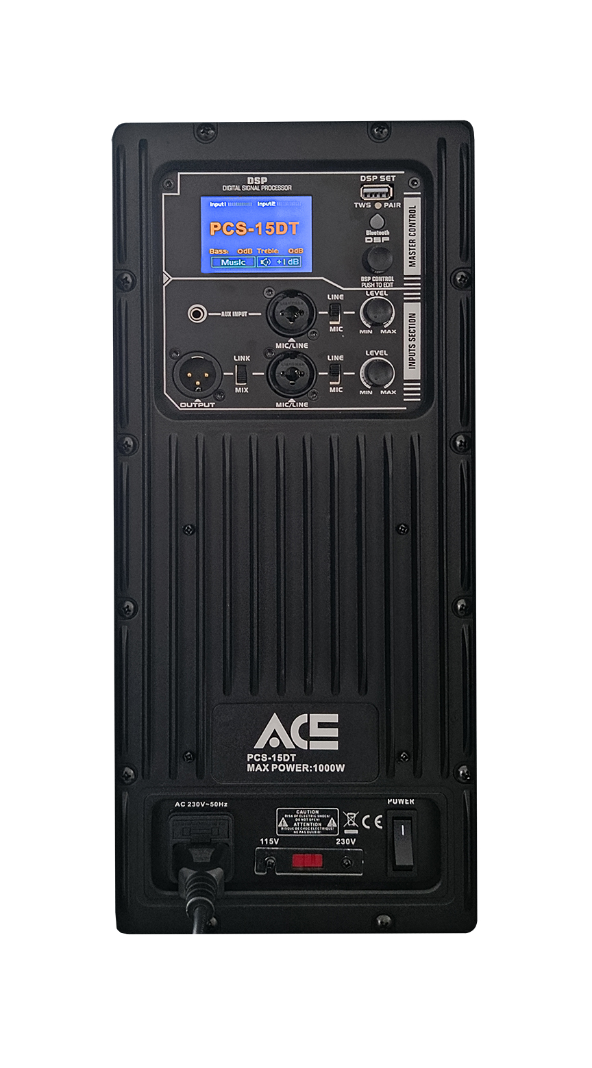 Aktivní 15" dvoupásmový digitální D-class reprobox s moderním designem a výkonným zesilovačem s maximálním výkonem až 1000 W. Vyroben je z ABS.